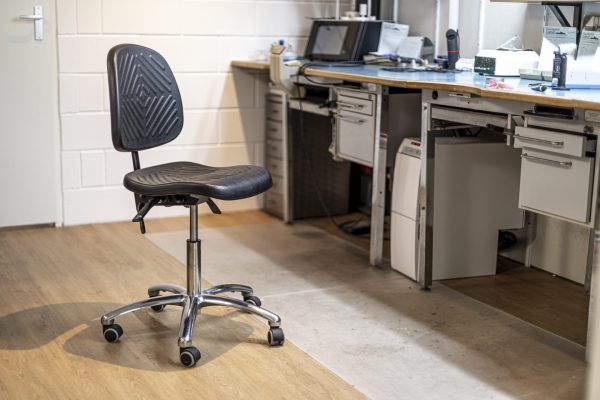 De GMS160 werkstoel heeft een zeer royale zit en rug van hoogwaardige PUR met veel ventilatieheuvels, waardoor transpiratie wordt tegengegaan.